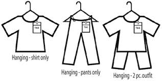 9. To hang 2 or 3 piece outfits put the 1st item on the hanger and hang the rest of the outfit behind the 1st piece with the pin going around the hanger so that all the weight is on the hanger and not on the clothes. See picture below.